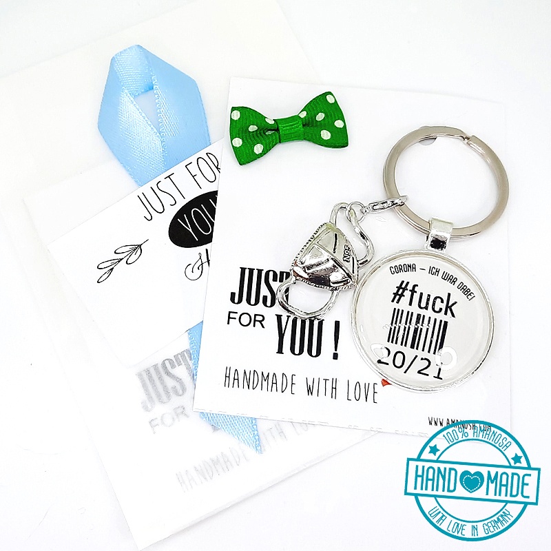 Corona 2020/21 hat uns eine Menge abverlangt. Mit diesem Schlüsselanhänger kann man sich an diese Zeit erinnern und anderen zeigen, das man dabei war. Handgemacht und elegant verpackt zum Weiterverschenken.