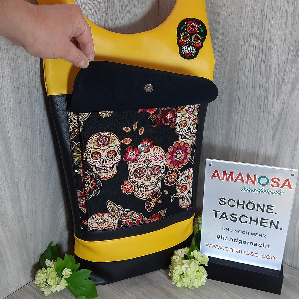 – Aufsatztasche aus Stoff mit klassischem Magnetverschluss in tollem Design “Totenkopf”