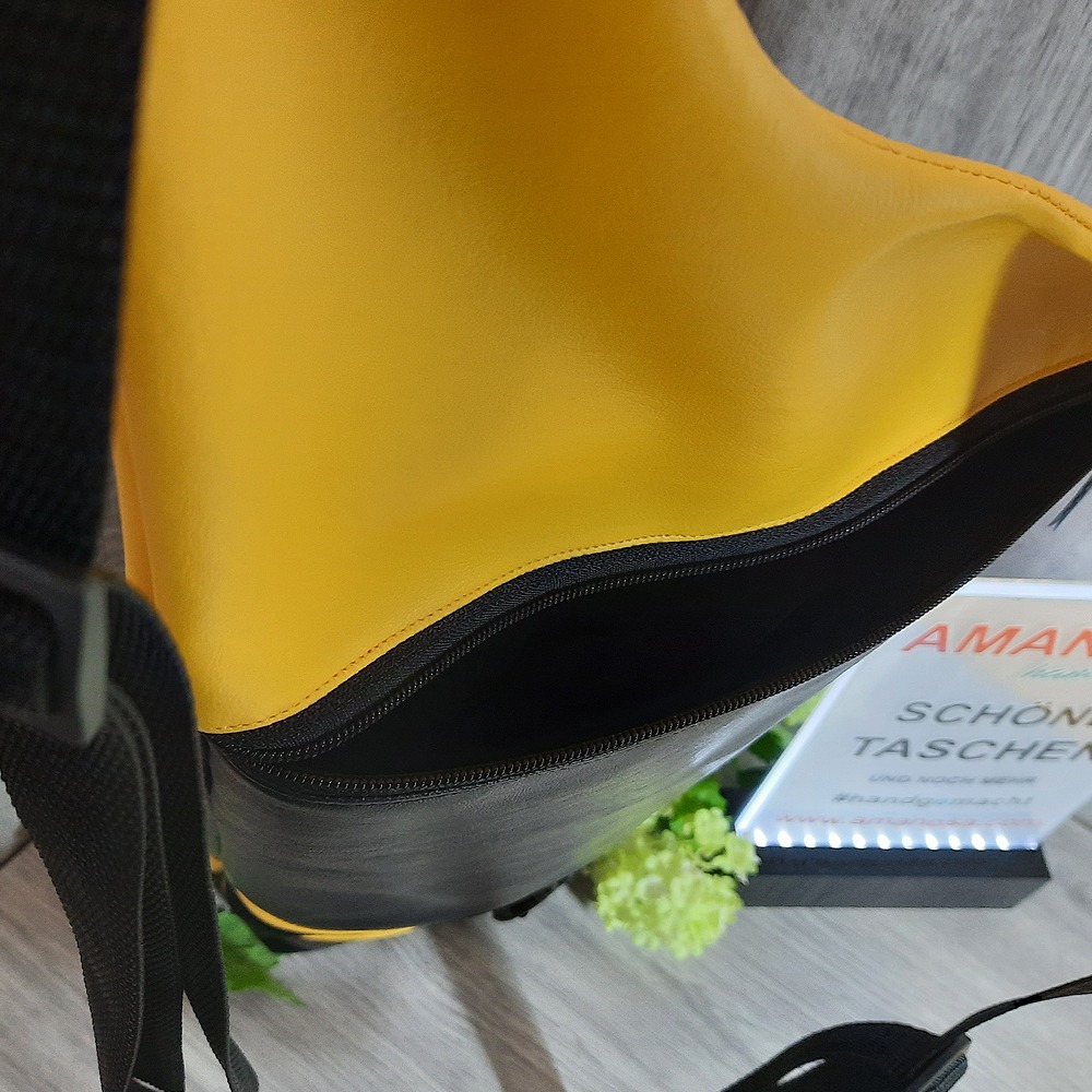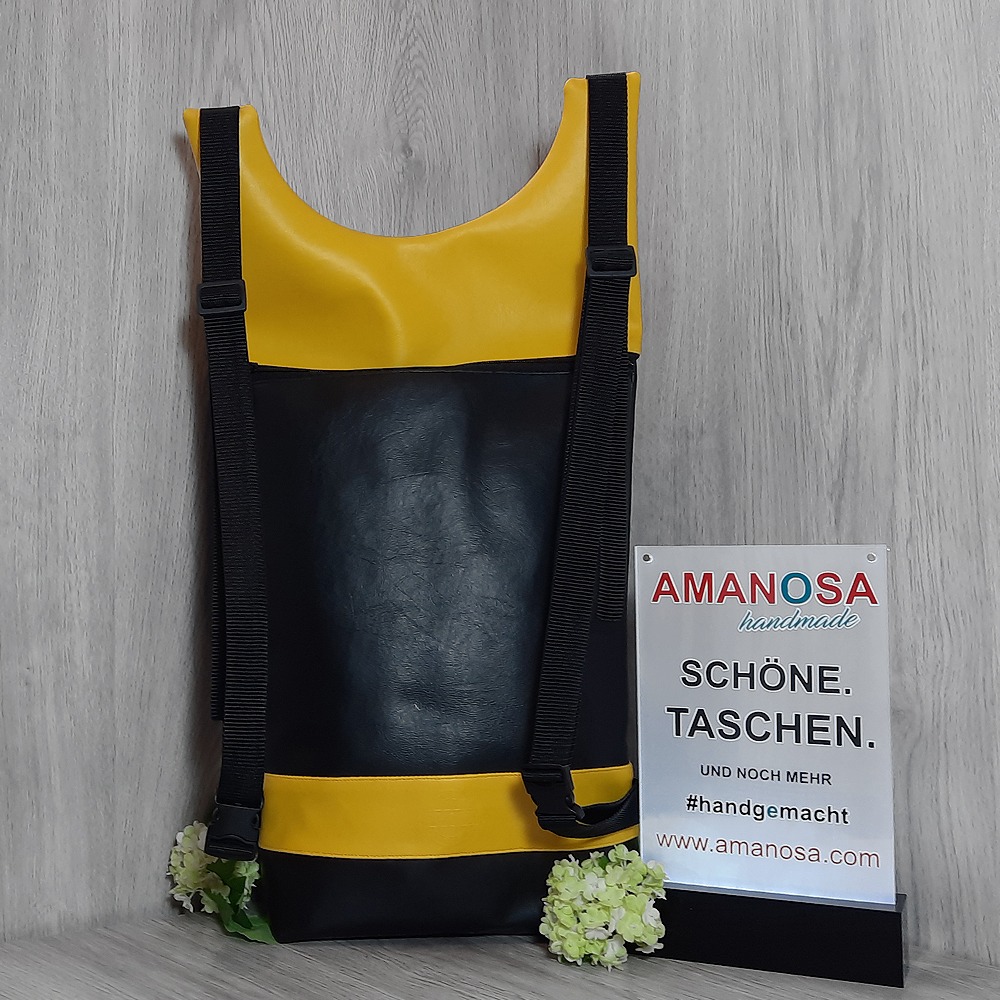 – gefertigt aus schwarzem und gelbem Kunstleder