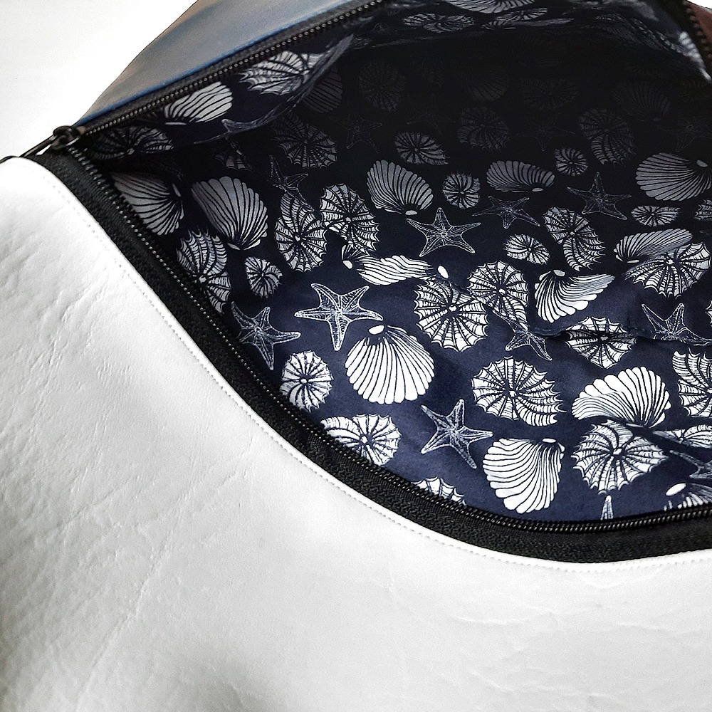 – Innenfutter im gleichen Stoff wie die Aufsatztasche Motiv “Maritim Meer Strand” – Extra Innentasche und Karabiner für den Schlüsselbund