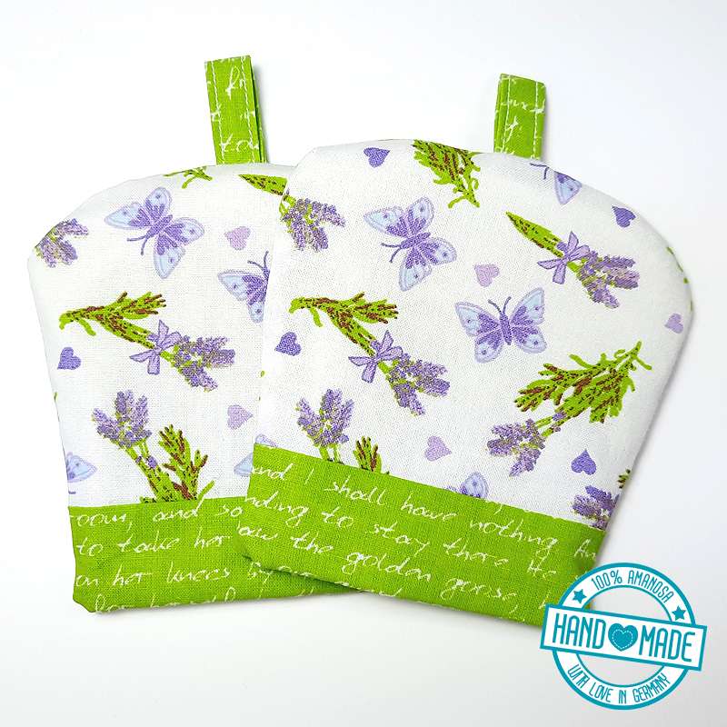Dieses zweiteilige Set aus Eierwärmern zaubert mit dem Motiv Lavendel Schmetterling den Frühling auf deinen Frühstückstisch.