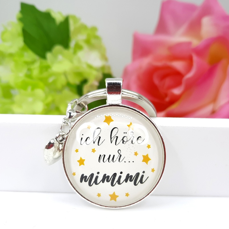Dir geht das Gejammer von jemand auf die Nerven? Zeige deinen Schlüsselanhänger „Ich höre nur mimimi“ und eure Laune wird sich gleich verbessern. Der Anhänger für Schlüsselbund oder Tasche ist auch ein lustiges Geschenk, handgemacht und elegant verpackt zum Weiterverschenken.