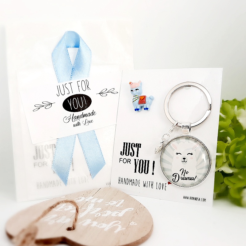 Ein schönes Geschenk als Mutmacher oder Tröster ist dieser Schlüsselanhänger mit dem Lama oder Alpaka. No Drama sagt das Lama.