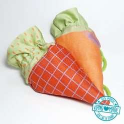 Die Möhrenbeutel sind eine tolle Geschenkverpackung für Mitbringsel zu Ostern oder aber auch eine schöne Oster Tischdekoration. Sie sind aus Baumwolle handgenäht und mit einem Tunnelzug versehen. Du magst außergewöhnliche Geschenkverpackungen und das Besondere? Dann sind diese Möhrenbeutel genau das Richtige für dich. Wähle aus zwei verschiedenen Designs.