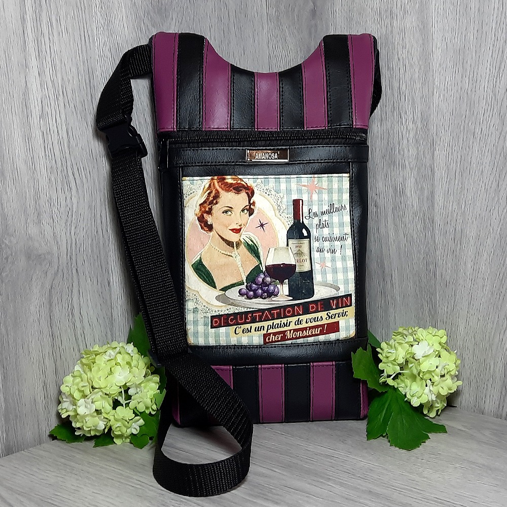 Diese Gürteltasche hat das französische Motiv Retro Weinprobe – Sac ceinture dégustation de vins millésimés.