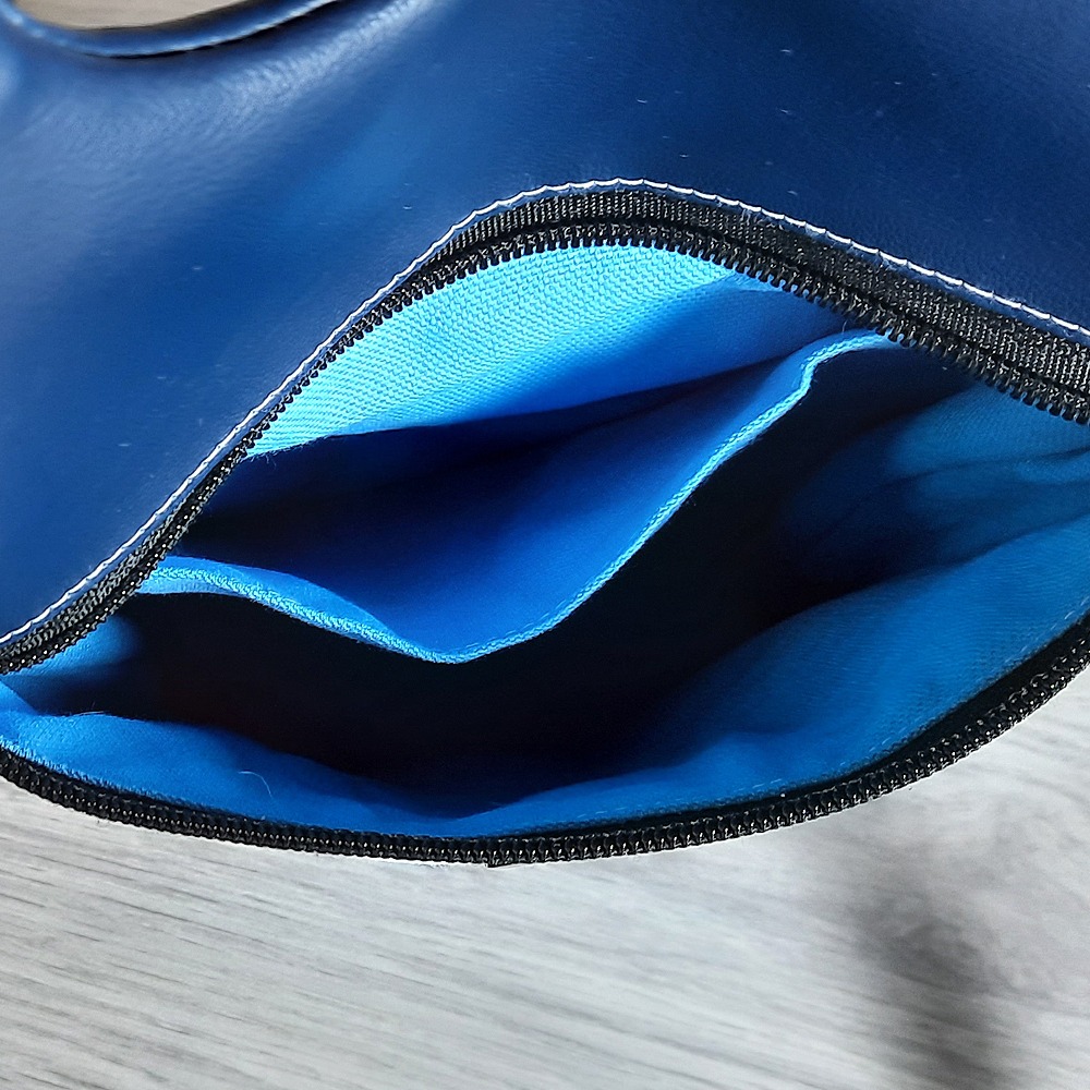 – Innenfutter aus blauem Stoff – Extra Innentasche