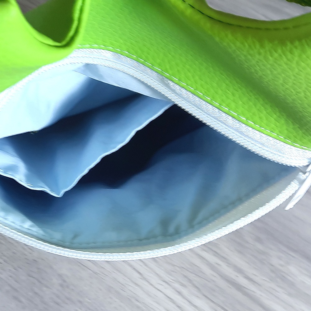 – Innenfutter aus hellblauem Stoff – Extra Innentasche
