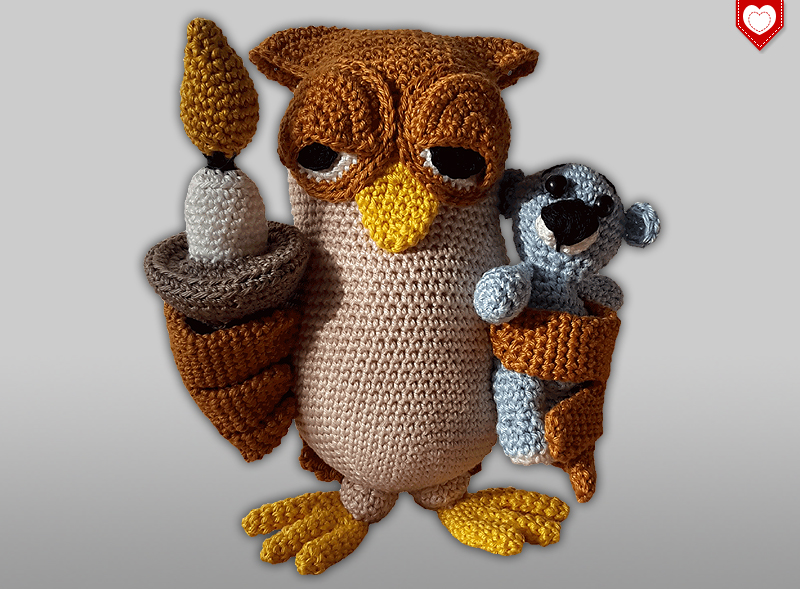 In dieser Häkelanleitung zeige ich dir Schritt für Schritt, wie du die Gute-Nacht-Eule mit der Nachtmütze, dem Kerzenleuchter und dem kleinen Teddy häkelst.