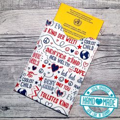 Die Impfpasshülle Impfausweistasche mit dem Motiv Bestes Kind der Welt ist in Handarbeit aus 100% Baumwolle genäht und damit bei bis zu 40 °C waschbar. Die Hülle hat die Abmessungen H 15cm und B 12 cm und ist damit geeignet für Impfausweise mit den Abmessungen bis 13 x 9 cm. Mit dieser Impfausweis Tasche hast du den Impfausweis immer griffbereit parat und sie schützt vor Schmutz, Zerknicken und Knittern. Und dazu sieht sie noch echt toll aus!