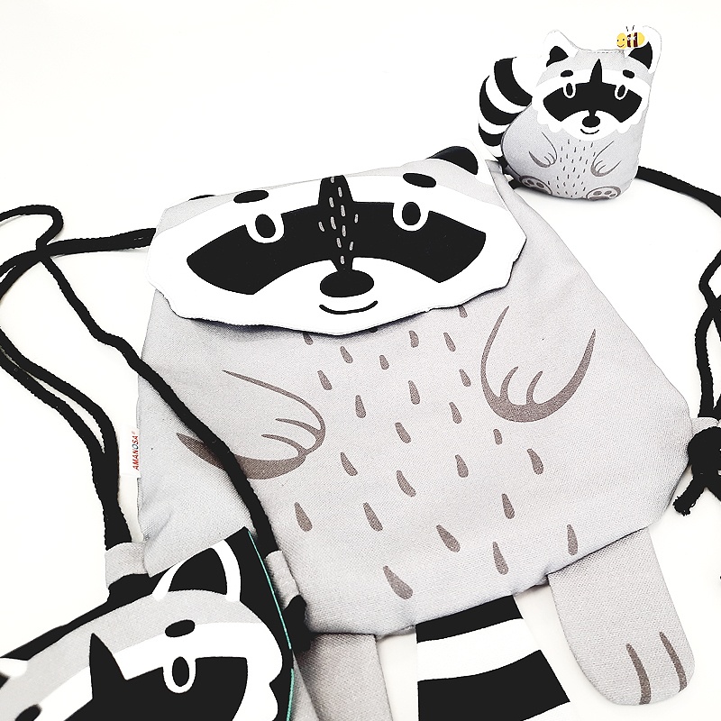 Dieses Kinderrucksack Set mit dem Motiv Waschbär besteht aus einem Rucksack, einem Brustbeutel, einem Stiftemäppchen sowie einem Stofftier in Form eines kleinen Waschbären. Kleine Fans des Waschbären sind mit diesem Set super ausgestattet.