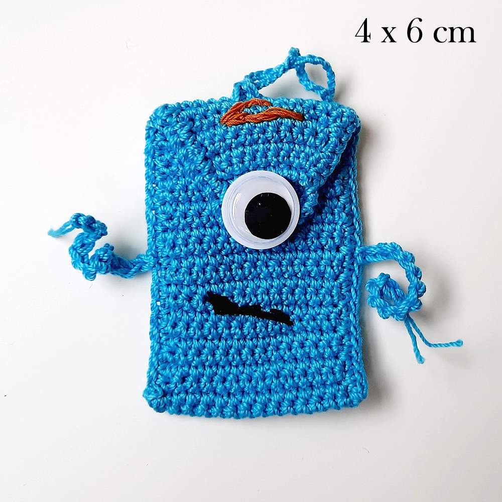 Kleine Häkelmonster Geschenk Mitbringsel Aufbewahrung für USB Stick, Lippenbalsam, Einkaufschip, Kleingeld mit Aufhängung und Verschluss