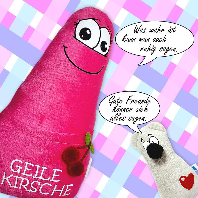 Hallo, ich bin Cherry, der MAXI Knuddelbuddie mit dem gewissen Etwas. Ich bin der Buddie der klaren Worte, denn unter Freunden kann man sich doch alles sagen oder? Du kennst eine geile Kirsche und möchtest es ihr auf elegante Weise sagen? Dann verschenke mich doch. Ich bin aus weichem Plüsch gefertigt und auf der Vorderseite findest du eine Tasche, in der du kleine Botschaften oder auch Geschenke verstecken und verschenken kannst.