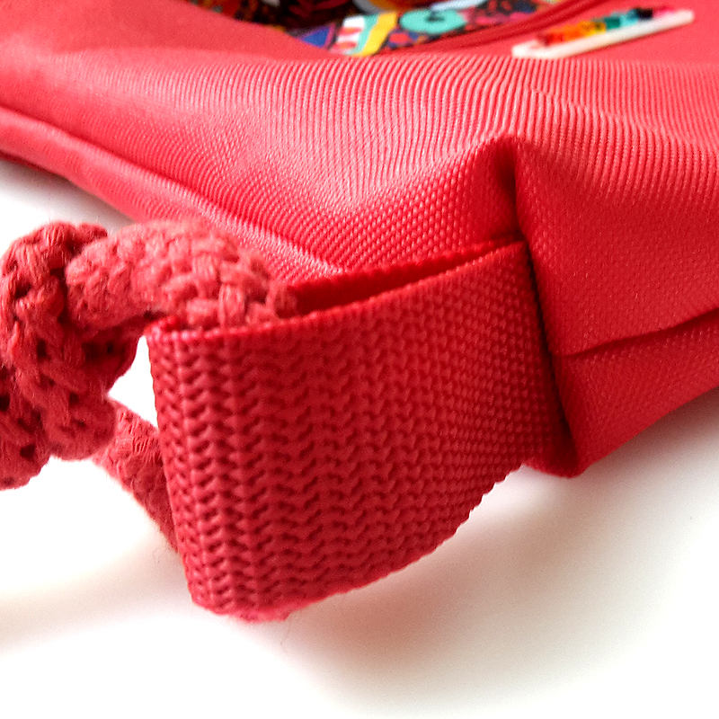 Die rote Baumwollkordel ist schön weich und trägt sich angenehm auf der Haut.