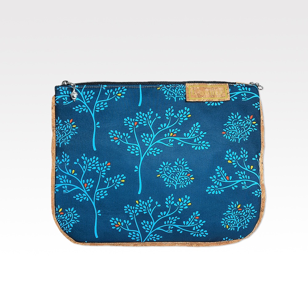 Umhängetasche Schultertasche Clutch L’amitié LA FORÊT aus Softshell und Kork mit Schlüsselanhänger Herbst Reh Hasen Handmade