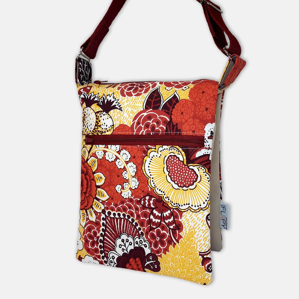 Diese Umhängetasche zeigt als Motiv tolle Blumen im Retro Stil. Wer den Retro-Trend mag wird diese Flapy lieben. Ob als Geschenk oder zum selber tragen – mit dieser Schultertasche in tollem Design sind alle wichtigen Utensilien wie Portemonait, Schlüssel, Handy oder Regenschirm sicher, übersichtlich und schnell griffbereit verstaut. Sie ist besonders geeignet für den Einkauf, Stadtbummel, den Konzertbesuch oder den täglichen Gebrauch im Büro.