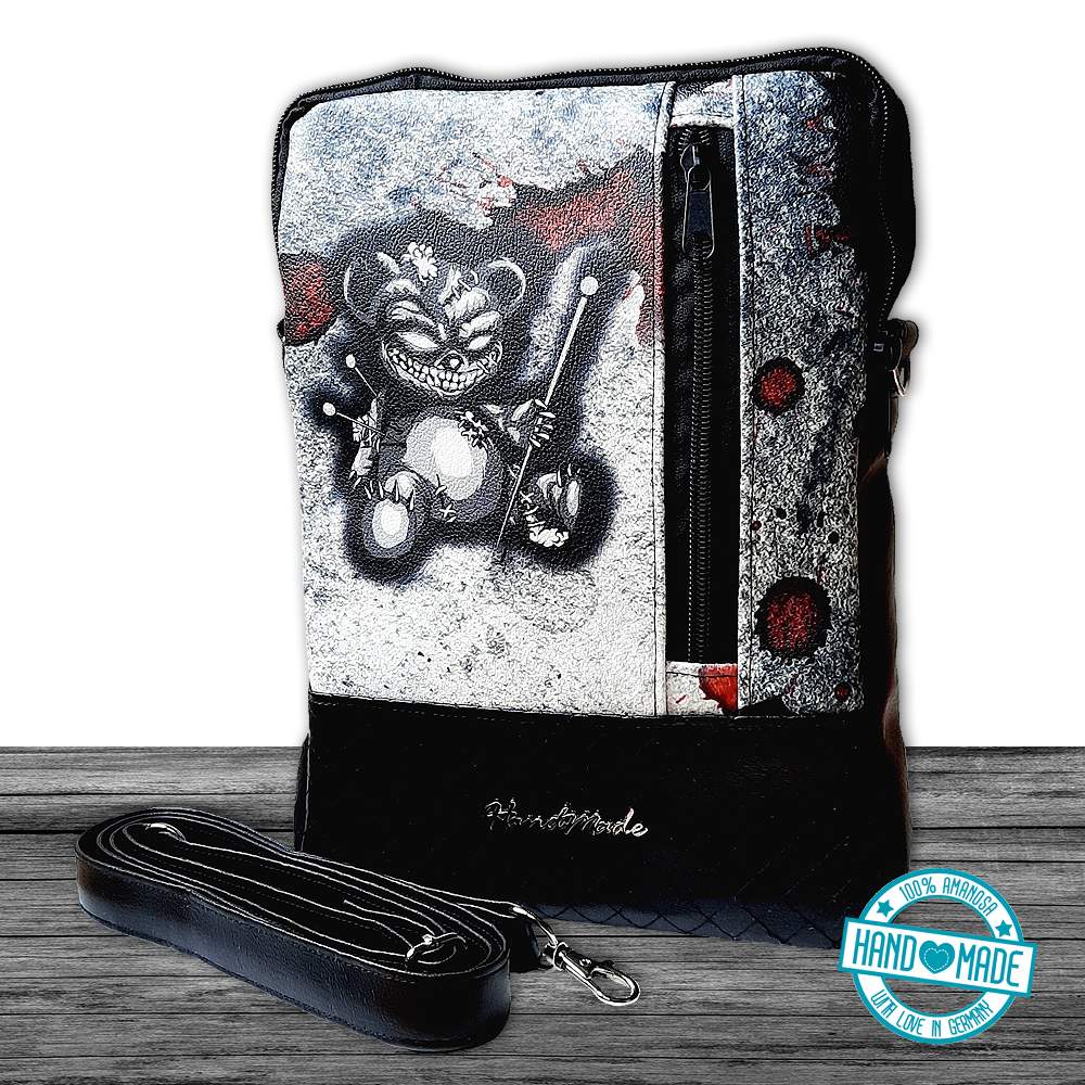Umhängetasche Schultertasche Sling Bag „KOMM SPIELEN“ Teddy handgemachte Tasche Gothic Style